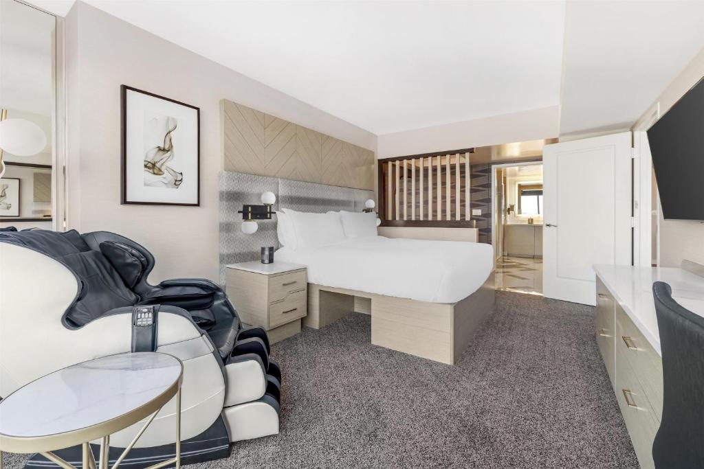 Guest rooms at Elara by Hilton Grand Vacations Club Elara Center Strip Las Vegas feature floor-to-ceiling windows and marble bathrooms. A kitchen or a kitchenette with a microwave and a mini-fridge and a 50-inch flat-screen TV with extended cable channels are offered in all guest rooms. Elara by Hilton Grand Vacations Club Elara Center Strip Las Vegas offers a lobby bar where guests can relax in a casual atmosphere while enjoying a favourite cocktail. A seasonal poolside bar is also available. This hotel is connected to Planet Hollywood Resort and Casino. Harry Reid International Airport is 10 minutes’ drive from the hotel.
