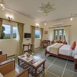 The Amargarh in Udaipur offers 4-star comfort with air-conditioned rooms featuring private bathrooms, garden or mountain views, and modern amenities such as free WiFi, minibar, and flat-screen TV. Guests can enjoy a variety of cuisines including Chinese, Indian, international, and barbecue grill at the on-site restaurant. Breakfast is served with vegetarian options and fresh fruits. The hotel features a garden, outdoor swimming pool, and an outdoor fireplace. Additional amenities include a children’s playground, picnic area, and free on-site private parking.