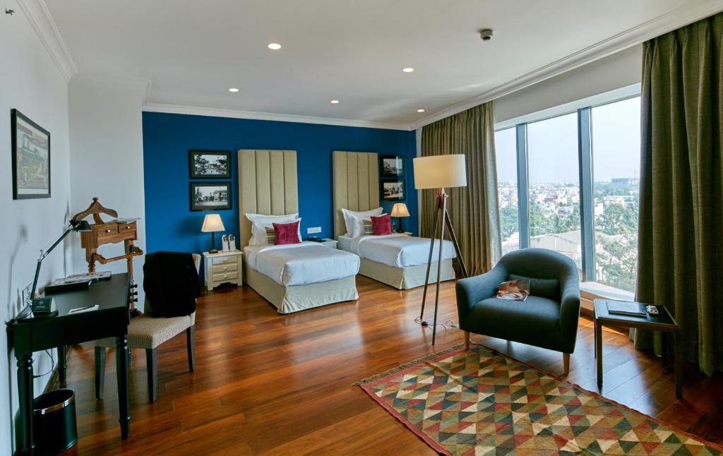Featuring easy access to VR Bengaluru mall, The Waverly Hotel & Residences offers accommodation in Bangalore. The hotel has Bounce, an in-house spa and a fitness centre and guests can enjoy a drink at the bar. Free private parking is available on site. Every room at this hotel is air conditioned and is fitted with a 42 inch LED TV with cable channels. Certain rooms have a seating area for your convenience. Each room is fitted with a private bathroom. For your comfort, you will find bath robes, slippers and free toiletries. The Waverly offers facilities such as the SkyDeck, an outdoor jogging track, an open-air temperature-controlled pool, a yoga deck and a fitness centre.
